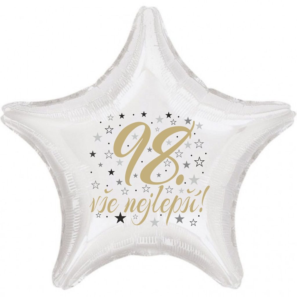 98. narozeniny balónek hvězda  Fóliové balónky nabízíme v různých tvarech a barvách. Jsou sice dražší než klasické latexové balónky, ale jejich výhodou je kvalita a nepropustnost. Fóliové balónky nafouknuté vzduchem Vám vydrží několik měsíců bez výrazných změn. V případě, že fóliový balónek nafouknete heliem, můžete počítat s dobou létání přibližně 3-7 dní, přičemž létání balónků ovlivňuje okolní teplota i objem samotného balónku.  Balónek má samouzavíratelný ventil, který ihned po nafouknutí zamezí úniku vzduchu popř. helia. Při nafukování vzduchem používejte prosím ruční pumpu popř. brčko na pití.  Inspiraci pro Vaší dekoraci najdete na internetovém magazínu www.party-narozeniny.cz. Velikost nabízených balónků je 42 cm.Je možné nafukovat heliem i vzduchem. Objem 13 litrů. POZOR!!! Všechny námi nabízené fóliové balónky mají samouzavíretelný ventil. V případě nafukování vzduchem, nafukujte ruční pumpou. Po nafouknutí se balonky sami uzavřou. Je možné je taky průběžně přes uzavíratelná ventil dofukovat.