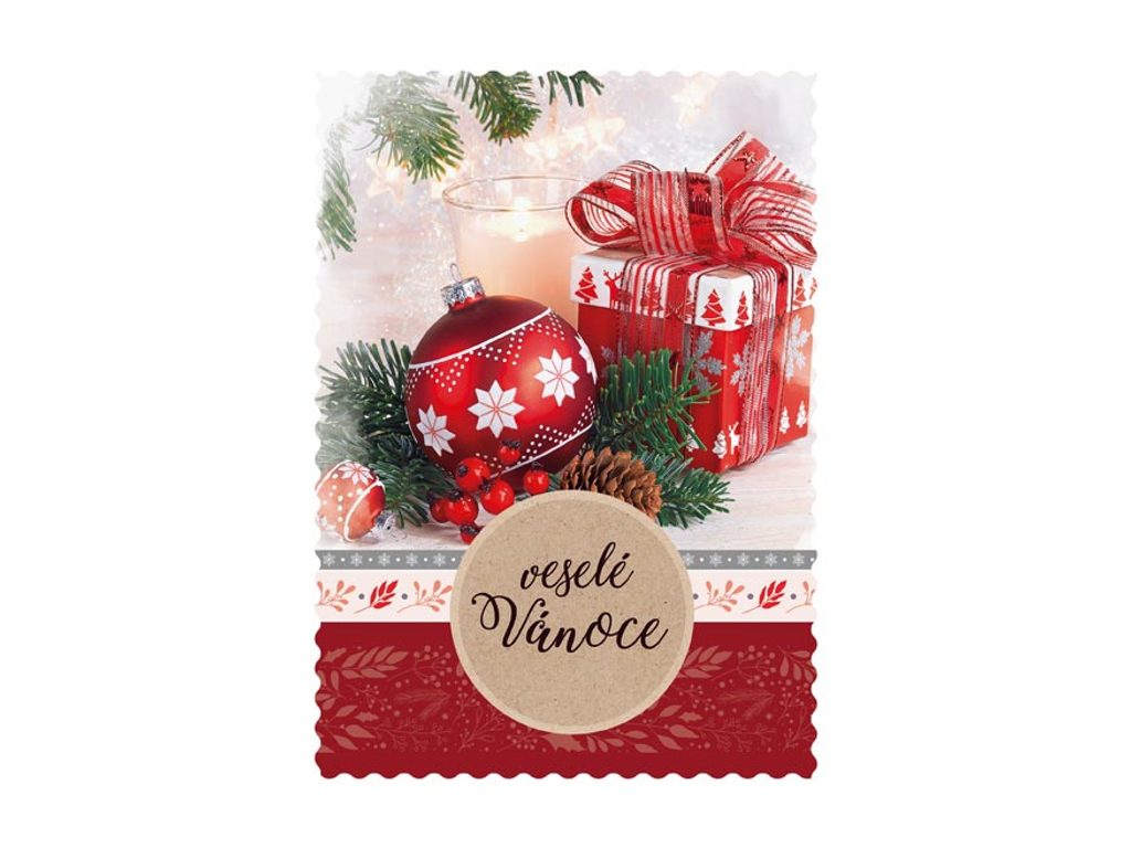 Pohlednice s vánočním motivem. Text na zadní straně obsahuje 3 pohlednice z 6. Papír: pohlednicový karton 240 g Povrchová úprava: lamino lesk + výsek vlnky Text: 3/6 Uvedená cena je za 1 ks. Dodáváme v mixu po 6 ks dle skladové zásoby.